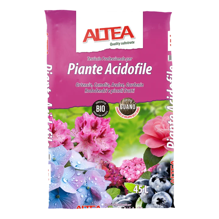 Altea Acidofile je organsko gnojilo za kisloljubne rastline, ki spodbuja rast in cvetenje azalej, rododendronov, gardenij ter drugih rastlin s kislimi zahtevami.