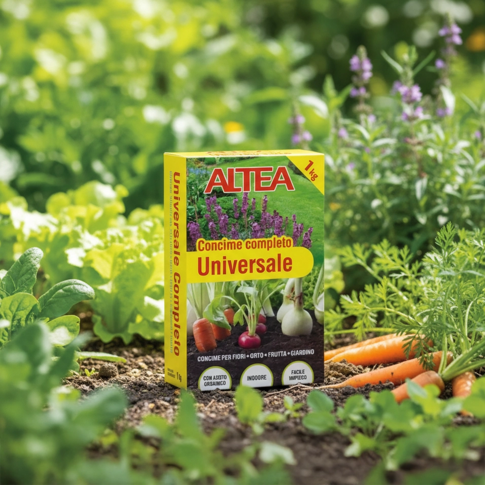 Altea Universale Completo je vsestransko organsko-mineralno gnojilo za zelenjavne, sadne in okrasne rastline ter trate. Idealno za uporabo spomladi in jeseni.