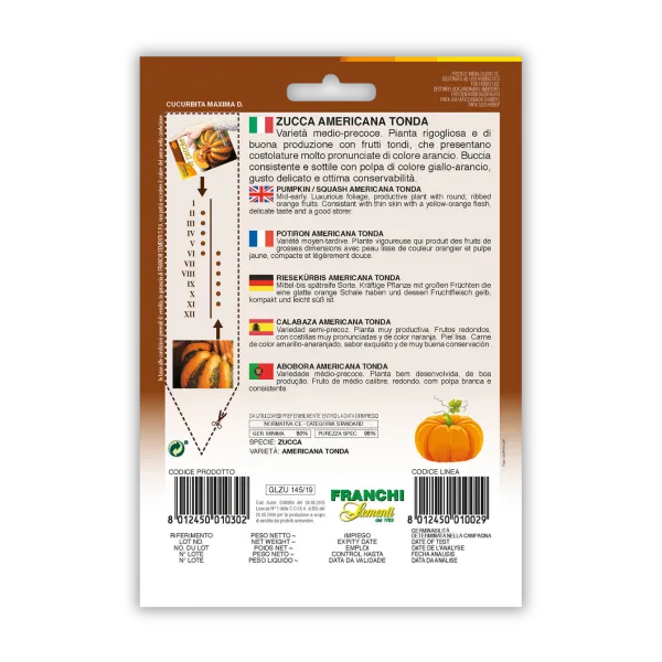 Enoletna okrasna buča Turkish Turban s plodovi značilne oblike turbana. Idealna za okrasne aranžmaje in dolgo obstojna po obiranju.