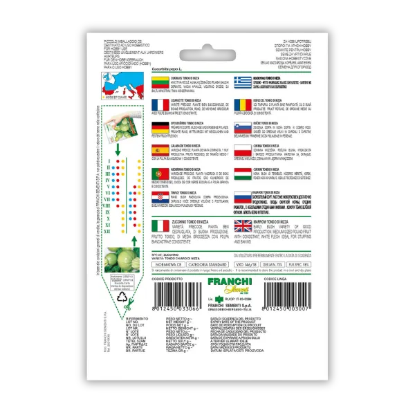Bučke Genovese so zgodnja sorta z grmastimi rastlinami, ki zelo dobro rodijo. Plodovi so dolgi, cilindrični in sivo-zelene barve. Pakiranje: 5g.