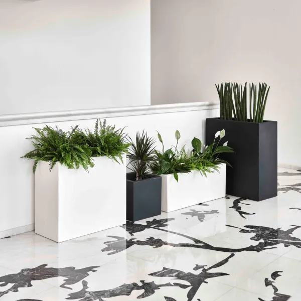 Cvetlični lonec Schio Cubo je narejen iz reciklirane plastike, kar ga naredi okolju prijaznega in hkrati estetsko dovršenega. Oblika kocke je primerna za moderne prostore, tako notranje kot zunanje. Odporen na UV žarke in zmrzal.