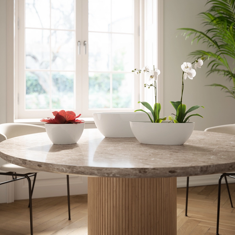 Korito je izdelano iz polipropilena (PP), ki je znan po svoji vzdržljivosti in odpornosti na vremenske vplive. Material vsebuje reciklirano plastiko, hkrati pa je izdelek tudi 100 % reciklabilen, zato predstavlja trajnostno izbiro za ljubitelje rastlin.