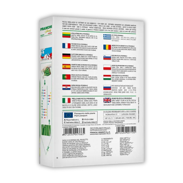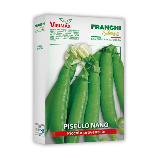 Semena graha Pisello Mezza Rama Rondo, srednje zgodnja sorta, ki doseže višino 70 cm. Rastlina ima dolge zelene stroke s 8-10 nagubanimi zrni, primerna za zamrzovanje.