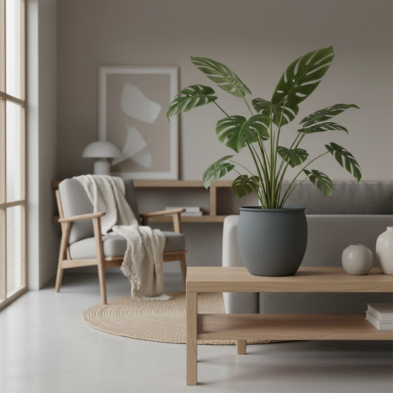 Primeren je za notranjo uporabo ter odličen za večje sobne rastline, kot so fikusi, monstere, palme ali druge dekorativne rastline. Eleganten dizajn in sodobne linije omogočajo, da se lonec lepo poda v moderne, minimalistične ali bolj naravne interierje. Po potrebi ga lahko kombinirate s plastičnim notranjim loncem.