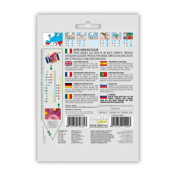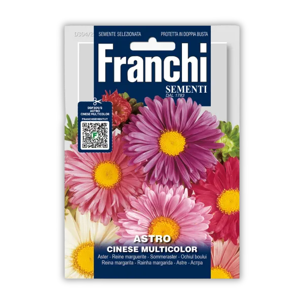 Kitajska astra, visoka približno 60 cm, z velikimi, pisanimi cvetovi. Idealna za cvetlične grede in rezano cvetje.