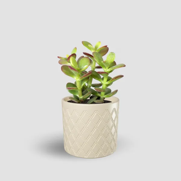 Okrasni lonček Eva je popolna izbira za notranje rastline. Izdelan je iz kakovostne keramike z unikatnim karo vzorcem.