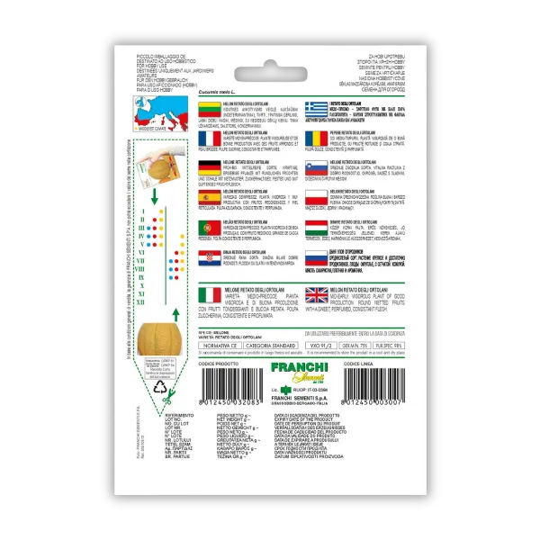Melona Retato degli ortolani je srednje zgodnja sorta z okroglimi sadeži in mrežasto lupino. Sladko in dišeče meso je čvrsto in zelo okusno. Pakiranje: 3g.