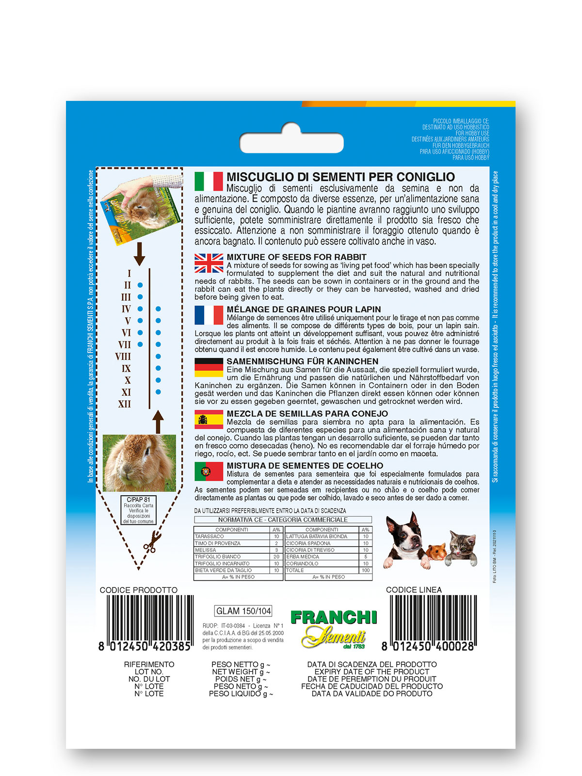 Mešanica semen za zajce kot „živa hrana za hišne ljubljenčke“ je posebej formulirana za dopolnitev prehrane in prilagojena naravnim ter prehranskim potrebam zajcev. Seme lahko sejemo v posode ali neposredno v zemljo; rastline lahko zajec uživa neposredno ali pa jih oberemo, operemo in posušimo pred hranjenjem.