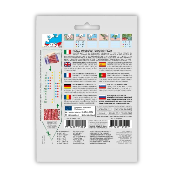 Visok fižol Borlotto Lamon je srednje zgodnja sorta, ki zraste do 180 cm. Ima velike, rdeče črtaste stroke, ki vsebujejo 6–7 velikih zrn. Primeren je za svežo porabo, zamrzovanje ali sušenje.