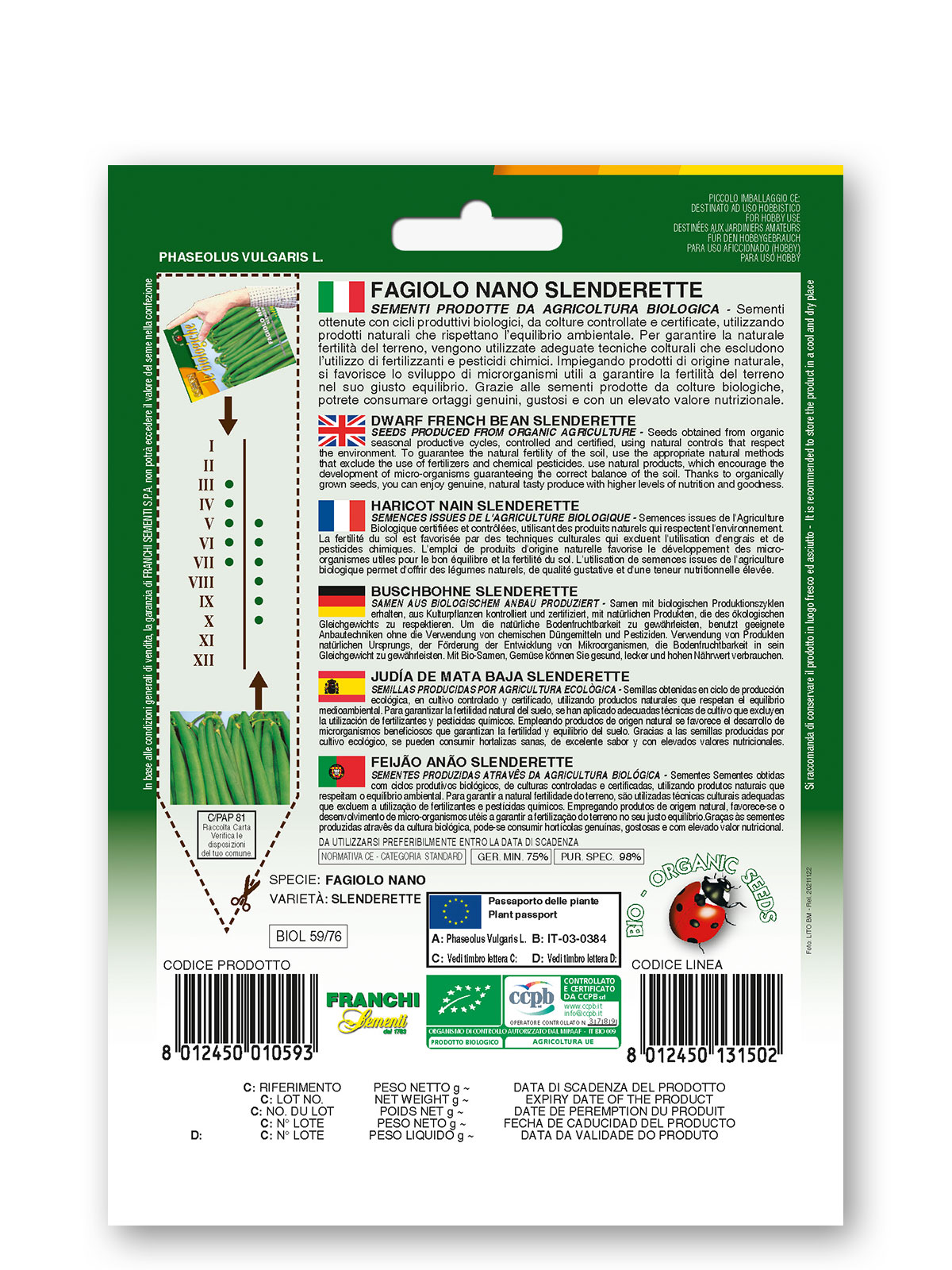 Nizkek fižol Borlotto di Vigevano je zgodnja sorta, ki zraste do 50–60 cm. Ima dolge, 14–15 cm rdeče črtaste stroke, ki vsebujejo 6–7 krem zrn z rdečimi črtami. Primeren je za svežo porabo ali sušenje.