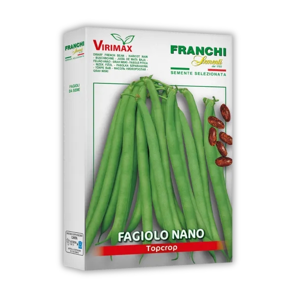 Nizek fižol Top Crop je zgodnja sorta z višino rastline okoli 50 cm. Stroki so zeleni, mesnati, brez nitk in dolgi 14–15 cm. Rastlina je zelo vitalna in rodna.