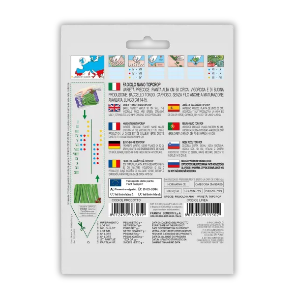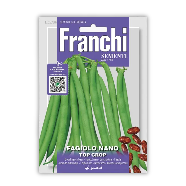 Nizek fižol Top Crop je zgodnja sorta z višino rastline okoli 50 cm. Stroki so zeleni, mesnati, brez nitk in dolgi 14–15 cm. Rastlina je zelo vitalna in rodna.