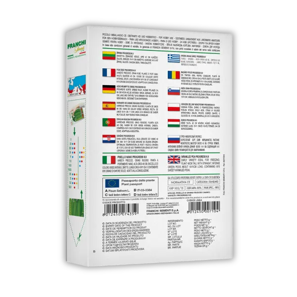 Nizek grah Progress N.9 je zgodnja sorta pritlikavega graha, ki doseže višino približno 40 cm. Zeleni, ravni stroki so dolgi 10-11 cm in vsak vsebuje 8-10 sladkih zrn. Odličen za svežo uporabo ali zamrzovanje.