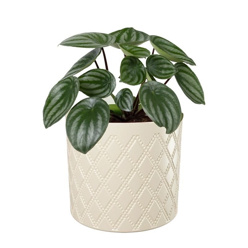 Okrasen cvetlični lonec Eva je popolna izbira za notranje rastline. Izdelan je iz kakovostne keramike z reliefno gravuro z diagonalnim (karo) vzorcem.