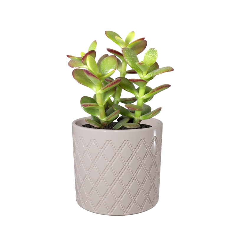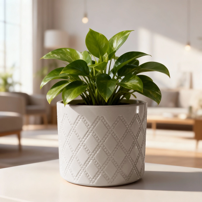 Okrasni lonček Eva je popolna izbira za notranje rastline. Izdelan je iz kakovostne keramike z unikatnim karo vzorcem.