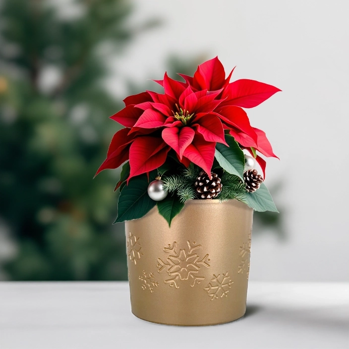 Okrasen cvetličen keramičen lonec Lina z zimskim motivom je popolna izbira za notranje rastline. Izdelan je iz kakovostne keramike in ima eleganten mat zaključek.