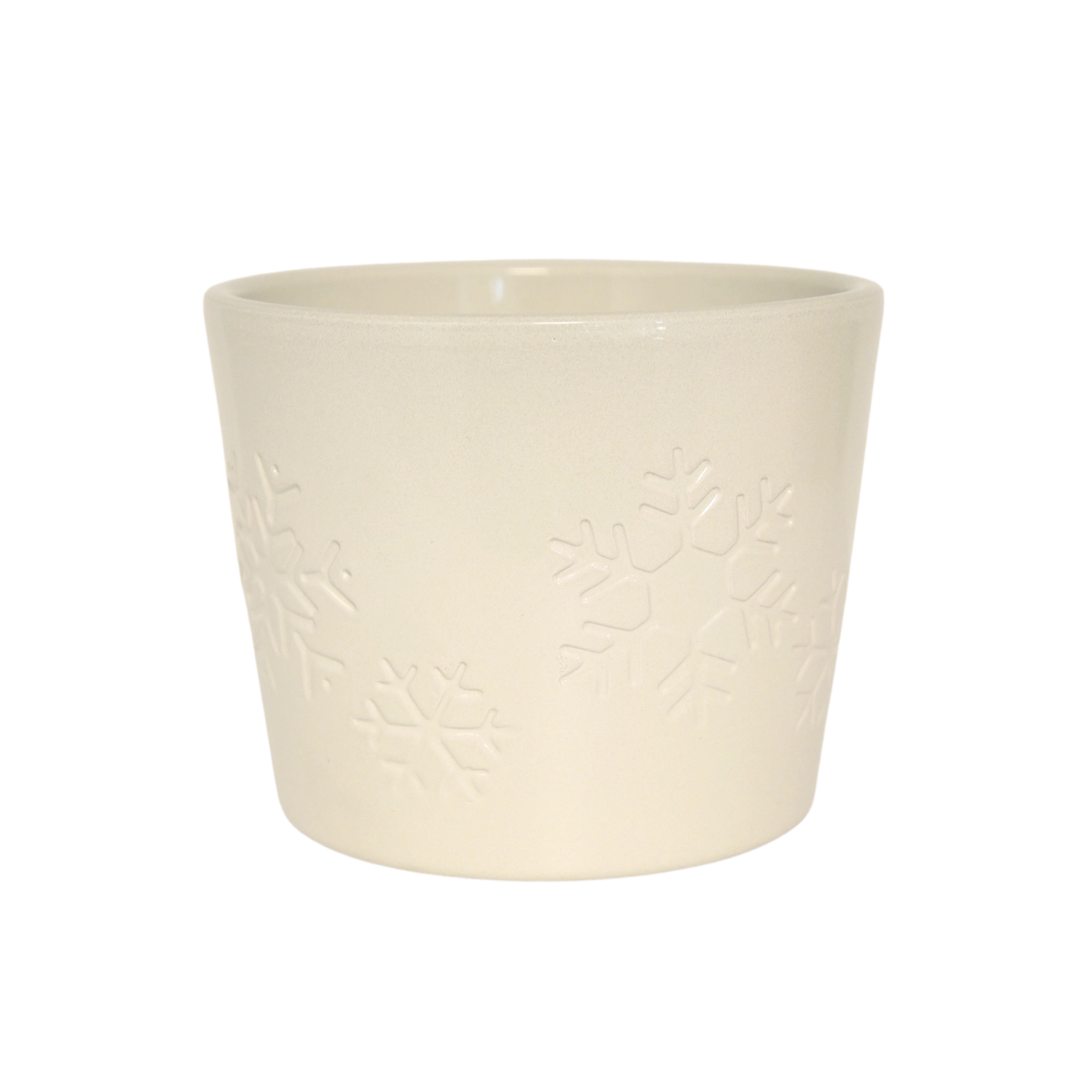 Okrasen cvetličen keramičen lonec Eva z zimskim motivom je popolna izbira za notranje rastline. Izdelan je iz kakovostne keramike in ima eleganten mat zaključek.