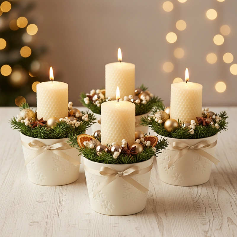 Okrasen keramičen lonec Lina - smrečke - srebrno-bež