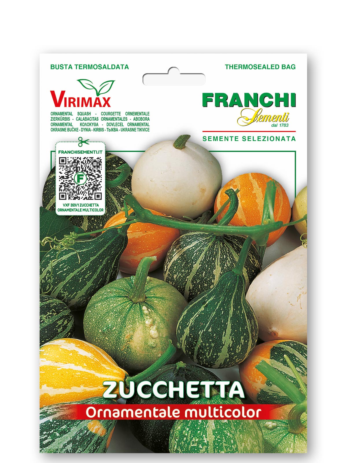 Enoletna okrasna buča Turkish Turban s plodovi značilne oblike turbana. Idealna za okrasne aranžmaje in dolgo obstojna po obiranju.