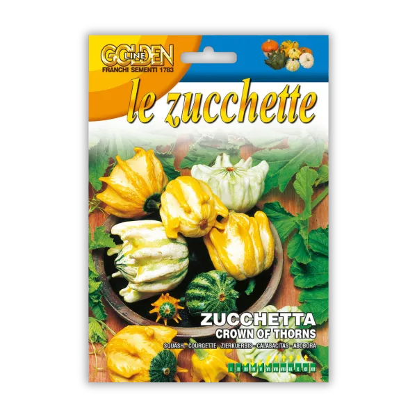 Enoletna okrasna buča Turkish Turban s plodovi značilne oblike turbana. Idealna za okrasne aranžmaje in dolgo obstojna po obiranju.