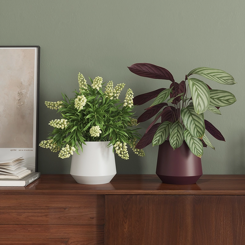 Okrasni cvetlični lonec Aurora je keramični lonec, primeren za notranjo uporabo in elegantno dekoracijo doma ali pisarne. Lonec je izdelan na Portugalskem in ga je mogoče kombinirati s sadilnim loncem, kar omogoča boljše zalivanje rastlin.