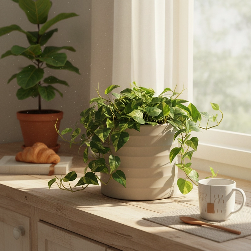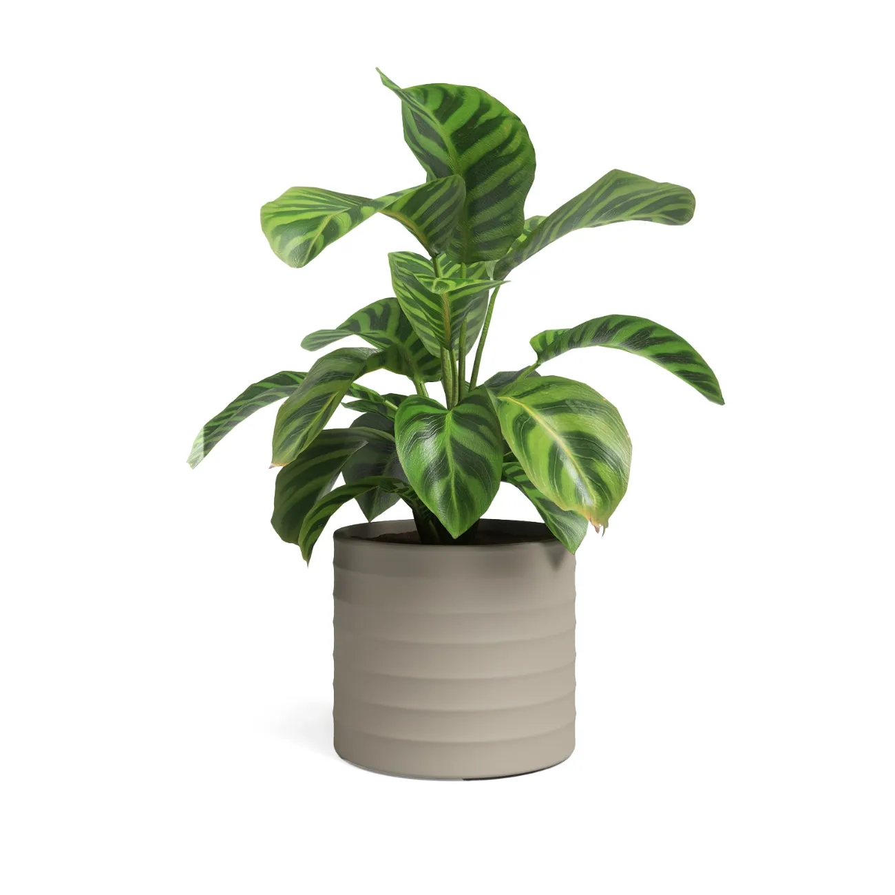 Eleganten cvetlični lonec Chloe zelen s horizontalnimi črtami, ročno izdelan iz keramike, združuje naravno estetiko in prefinjenost za popolno notranjo dekoracijo.