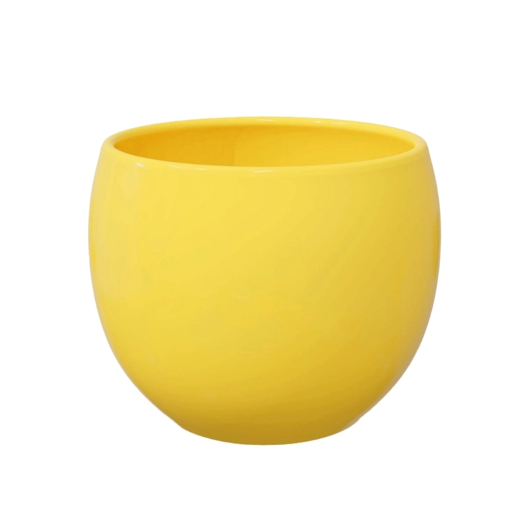 Okrogel keramičen lonec Lisa - rumena- sijaj