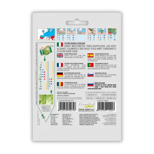 Radič Bianca di Milano je srednje zgodnja sorta z podolgovatimi, svetlo zelenimi listi in čvrsto glavo.