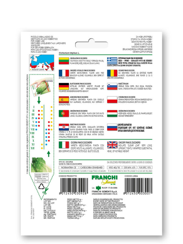Radič Catalogna Gigante di Chioggia je srednje zgodnja sorta z dolgimi, teo zelenimi listi in širokimi, svetlimi stebli, idealnimi za pripravo solat. Pakiranje: 10g.