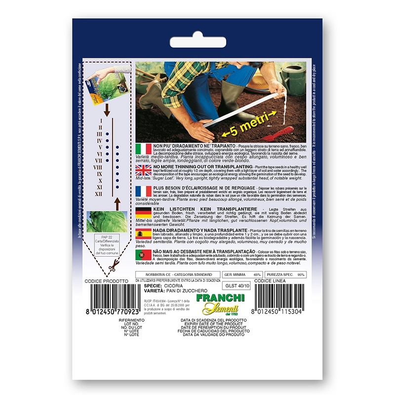 Radič Catalogna Gigante di Chioggia je srednje zgodnja sorta z dolgimi, teo zelenimi listi in širokimi, svetlimi stebli, idealnimi za pripravo solat. Pakiranje: 10g.
