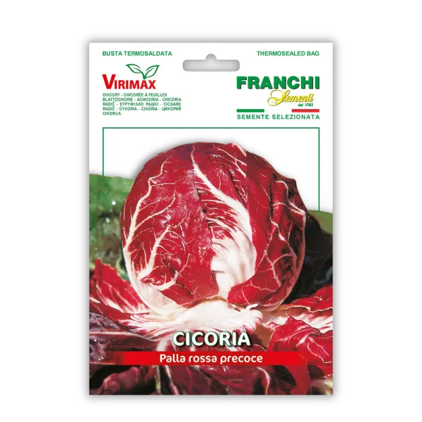Radič Palla Rossa je zgodnja sorta z dobro zavitimi, rdečimi listi in čvrsto okroglo glavo. Ni odporen na mraz. Pakiranje: 10g.