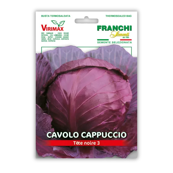 Rdeče zelje Tête Noire 3 je srednje pozna sorta, ki tvori tesno zaprto, okroglo glavo z listi teo rdečkasto-vijoličaste barve. Zelje je odlično za uporabo v solatah, juhah ali za kisanje, saj ohranja svojo strukturo tudi po kuhanju ali fermentaciji. Sorta je dobro odporna na mraz in je primerna za pridelavo v hladnejših podnebjih. Zelje je bogato z vitaminom C, vitaminom K in antioksidanti, ki prispevajo k zdravju imunskega sistema. Seme sejemo od maja do julija, pridelek pa je primeren za pozno jesensko obiranje. Kalivost semen je 75%, čistoča semen 97%. Proizvajalec: Franchi Sementi. Pakiranje: 6g.