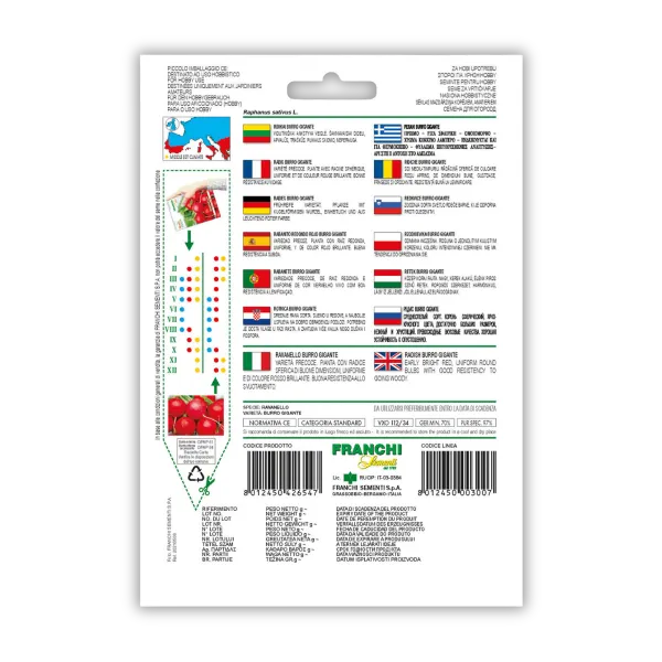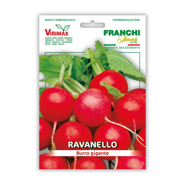 Redkvica Burro Gigante je srednje zgodnja sorta z debelim in krhkim mesom, ki je odporna proti olesenitvi. Pakiranje: 12g.
