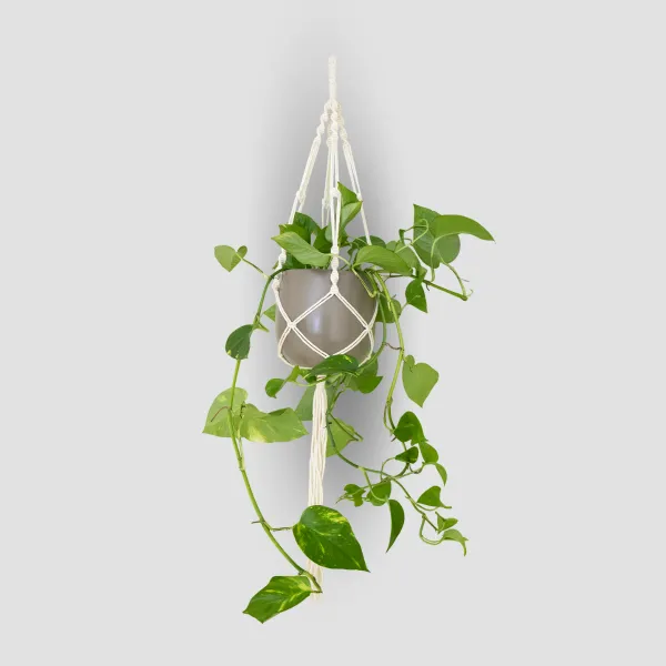 Ročno izdelana Macramé obešanka za viseče lonce je elegantna dekoracija, prepletena z natančnimi spiralnimi vozli, ki prinašajo unikaten estetski videz. Primerna je za notranjo in zunanjo uporabo ter zagotavlja prijetno in sproščeno vzdušje. Idealna izbira za ljubitelje ročno izdelanih in boho dekorativnih elementov.