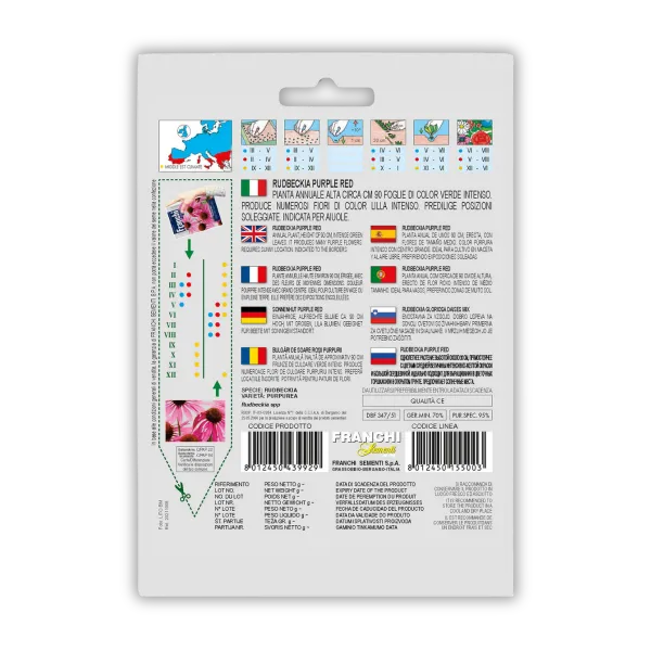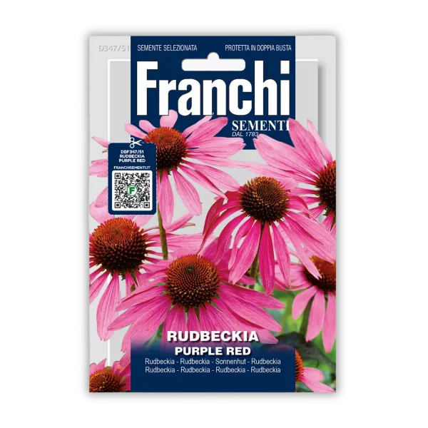 Rudbekija vijolično rdeča (Rudbeckia spp) je visoka, do 90 cm, enoletnica z značilnimi velikimi cvetovi vijolične barve. Ta robustna rastlina ima intenzivno zelene liste in se najbolje obnese na sončnih legah, kjer se lahko uporablja za okrasne zasaditve ali kot privlačen element v skalnjakih. Cveti skozi pozno poletje in jesen. Preprosta za vzgojo, vendar jo je v hladnih mesecih potrebno zaščititi. Ta rastlina je odlična izbira za vrtove, ki zahtevajo živahne barve in enostavno vzdrževanje.