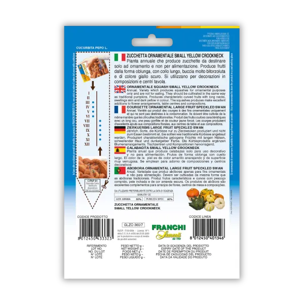 Enoletna okrasna buča Turkish Turban s plodovi značilne oblike turbana. Idealna za okrasne aranžmaje in dolgo obstojna po obiranju.