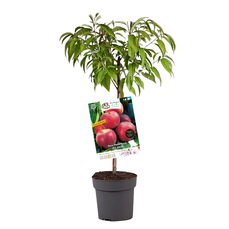Breskev Iris Rosso ima velike plodove z belim mesom dobre konsistence in okusa, ki se enostavno loči od koščice. Sadike so kakovostne dvoletne sadike italijanskega porekla, primerne za hitro rast in zgodnejši pridelek. Sadike so visoke 140–160 cm, v loncih z obsegom 20–22 cm.
