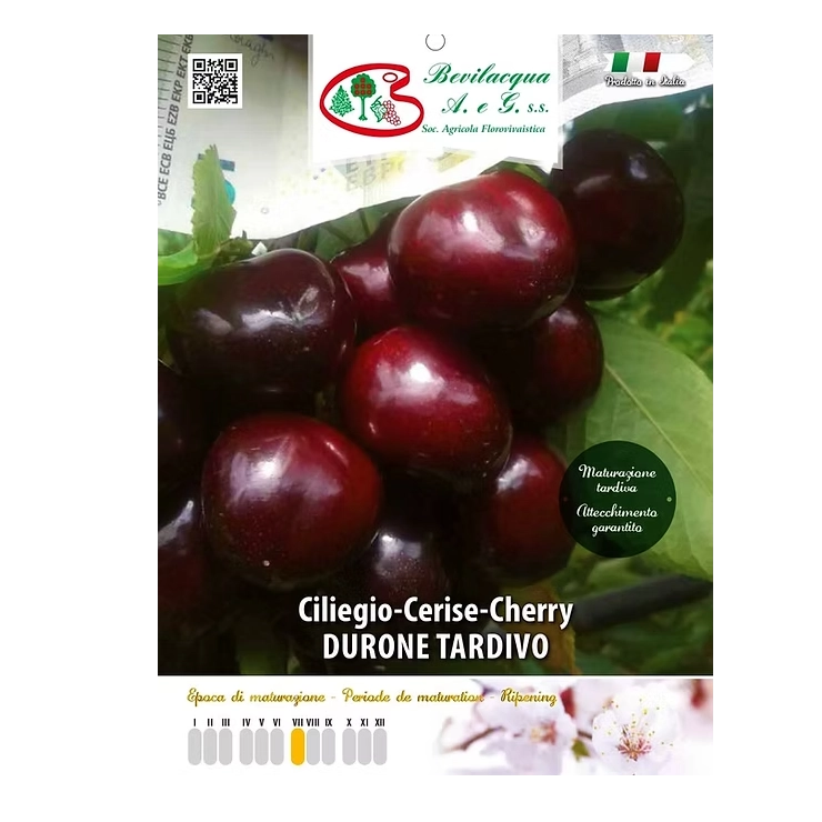‘Durone Tardivo’ je pozna durona sorta češnje, ki navdušuje z intenzivno rdečimi, srčastimi plodovi. Ponujamo kakovostne dvoletne sadike italijanskega porekla, ki zagotavljajo hitrejši razvoj in zgodnejši pridelek. Sadike so visoke 140–160 cm, v loncih z obsegom 20–22 cm.