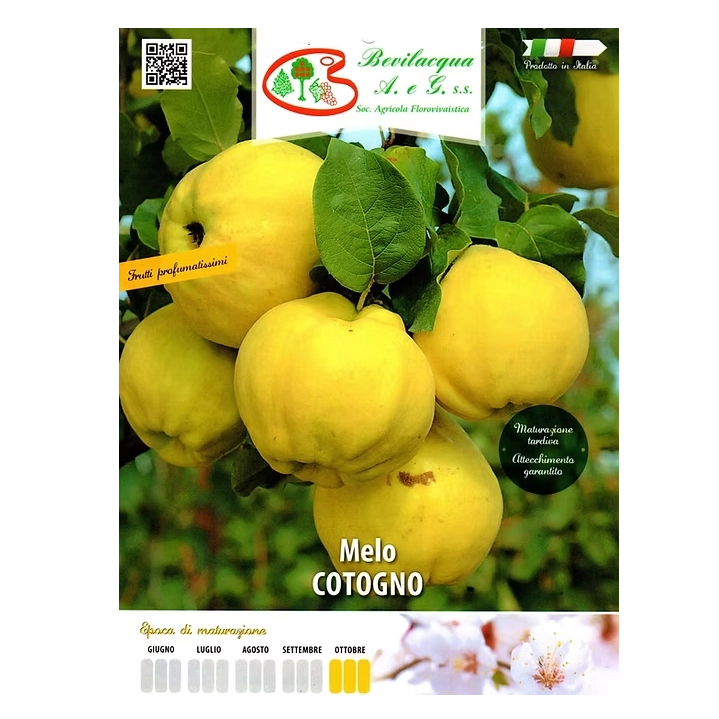 Cotogno je zelo aromatična vrsta jablane z zlato-rumenimi plodovi. Ponujamo kakovostne dvoletne sadike italijanskega porekla, ki zagotavljajo hitrejši razvoj in zgodnejši pridelek. Sadike so visoke 140–160 cm, v loncih z obsegom 20–22 cm.