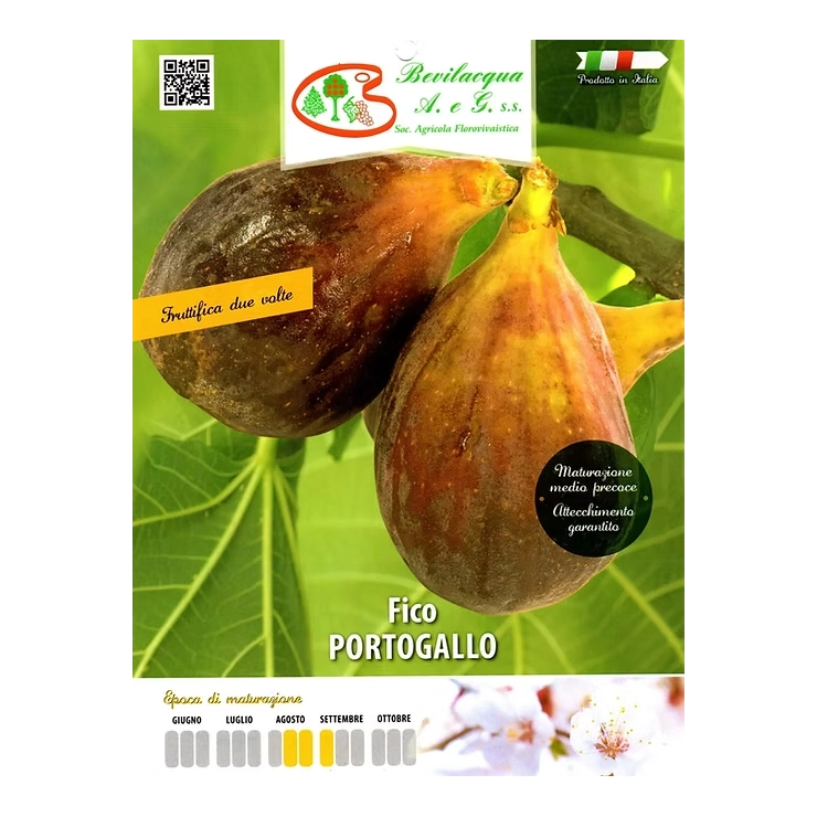 Figa PORTOGALLO z velikimi podolgovatimi plodovi. Ponujamo kakovostne dvoletne sadike italijanskega porekla, ki zagotavljajo hitrejši razvoj in zgodnejši pridelek. Sadike so visoke od 140 - 160 cm, v loncih z obsegom 20 - 22 cm.