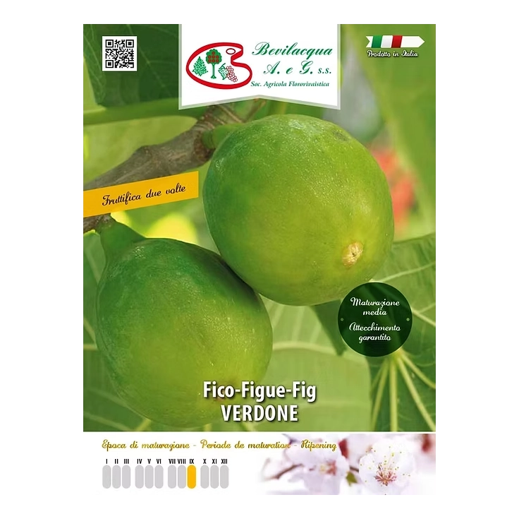Figa VERDONE z srednje velikimi zelenimi plodovi. Ponujamo kakovostne dvoletne sadike italijanskega porekla, ki zagotavljajo hitrejši razvoj in zgodnejši pridelek. Sadike so visoke od 140 - 160 cm, v loncih z obsegom 20 - 22 cm.