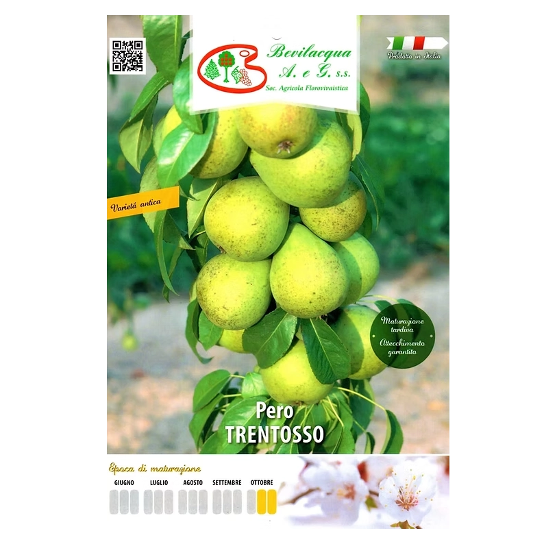 Trentosso je stara zimska sorta hruške s srednje velikimi plodovi. Plodovi imajo gladek olup, meso pa je rumenkasto, čvrsto, sladkega okusa, granulasto in aromatično. Sorta je zelo rustikalna, odporna na bolezni in primerna za dolgotrajno shranjevanje. Primerno je za svežo porabo, pečenje v pečici in kasnejšo uporabo čez zimo. Sadike so kakovostne dvoletne sadike italijanskega porekla, visoke 140–160 cm, v loncih z obsegom 20–22 cm.