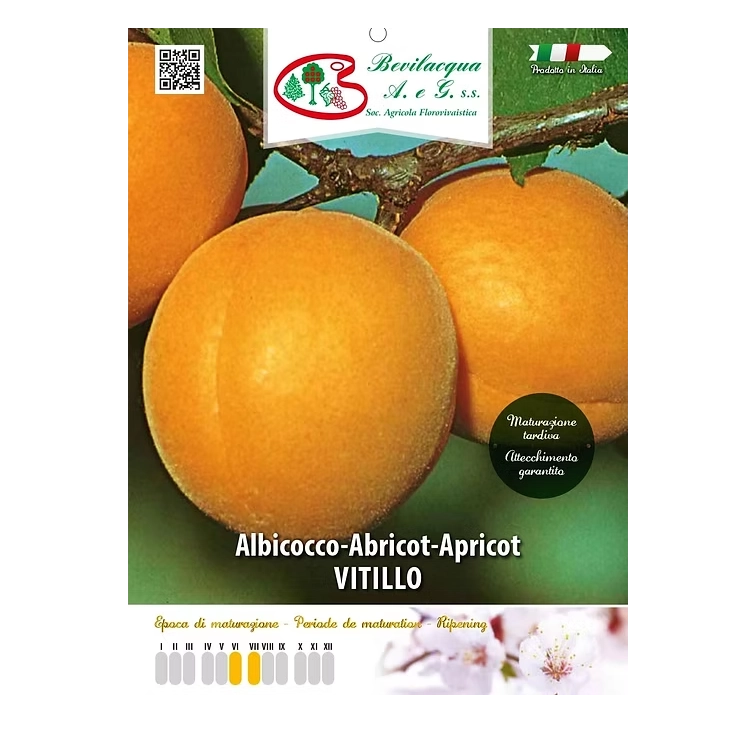 Vitillo je na novo uvedena pozna sorta marelice, ki jo odlikujejo zelo veliki, gladki plodovi zlato rumene barve. Sorta je cenjena zaradi dobrega okusa in prijetne arome. Plodovi so primerni za svežo porabo, pripravo sokov, sadnih solat, marmelad in shranjevanje. Sadike so dvoletne, visoke 140–160 cm, vzgojene v loncih premera 20–22 cm, kar omogoča sajenje skozi vse leto.