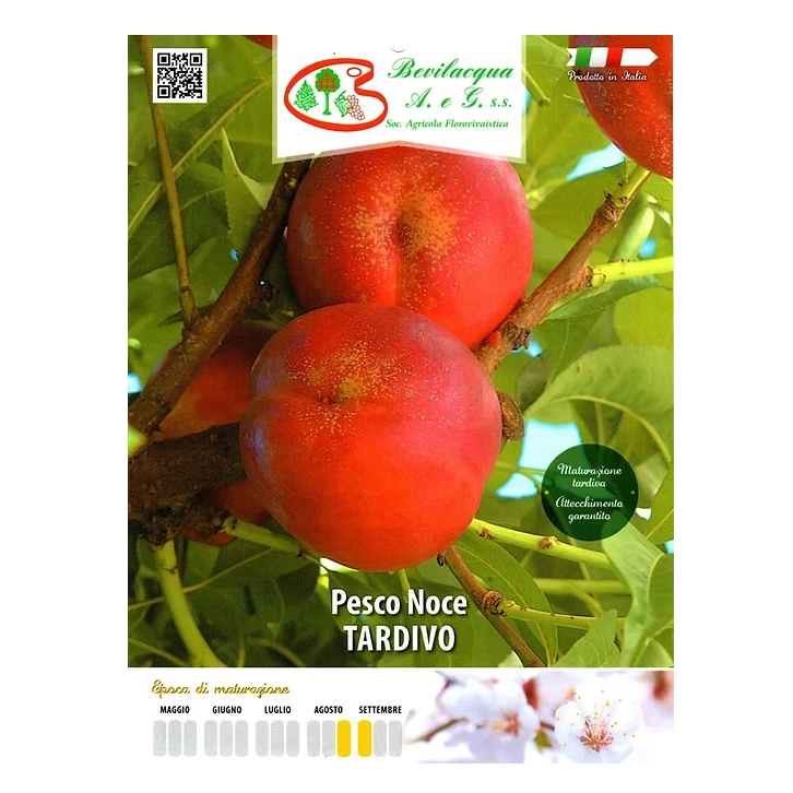 Nektarina Tardivo ima gladke temno rdeče plodove z sladkim, aromatičnim in čvrstim mesom, ki dozori pozno in ostane sveže dolgo po obiranju. Sadike so kakovostne dvoletne sadike italijanskega porekla, ki zagotavljajo hitrejši razvoj in zgodnejši pridelek. Sadike so visoke 140–160 cm, v loncih z obsegom 20–22 cm.