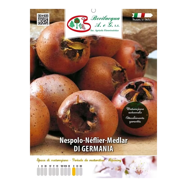 Nešplja je rustikalna in odporna rastlina, ki ne potrebuje posebnih zaščitnih ukrepov pred boleznimi ali škodljivci. Ponujamo kakovostne dvoletne sadike italijanskega porekla, ki zagotavljajo hitrejši razvoj in zgodnejši pridelek. Sadike so visoke od 140 - 160 cm, v loncih z obsegom 20 - 22 cm.