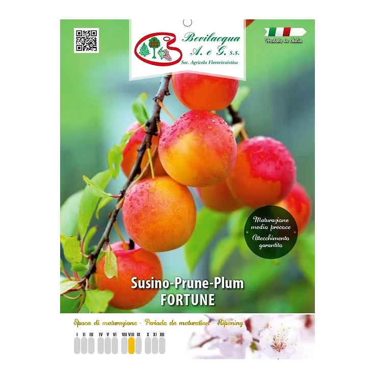 Sliva FORTUNE z velikimi z velikimi rdečkastimi plodovi. Ponujamo kakovostne dvoletne sadike slive italijanskega porekla, ki zagotavljajo hitrejši razvoj in zgodnejši pridelek. Sadike so visoke od 140 - 160 cm, v loncih z obsegom 20 - 22 cm.