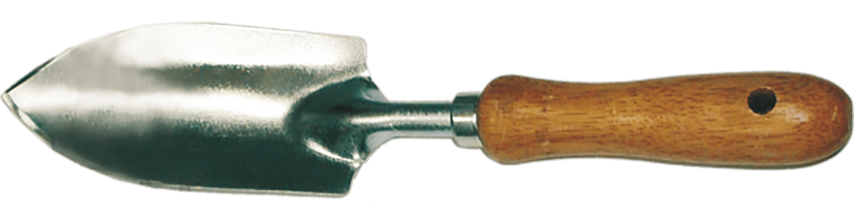 Lopatica za presajanje z delovno površino iz galvaniziranega jekla in lesenim ročajem. Dolžina: 31 cm. Idealna za sajenje, presajanje in druga vrtna opravila.