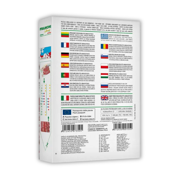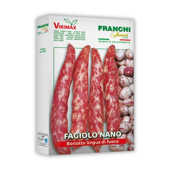 Nizki fižol Borlotto Lingua di Fuoco je visokorodna sorta z rdeče-progasti stroki. Setev od aprila do avgusta. Uporaben svež ali za sušenje.