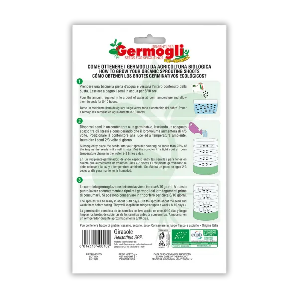 Večbarvna okrasna sončnica (Girasole Ornamentale Multicolor) je enoletna rastlina z velikimi cvetovi v različnih barvnih odtenkih. Rastlina najbolje uspeva na sončnih legah in je primerna za rezano cvetje. Cveti od poletja do jeseni in jo lahko sadimo skupaj z amarantom, cinijami, ognjičem in okrasnimi travami za visoko, barvito in opazno poletno zasaditev. 4g.