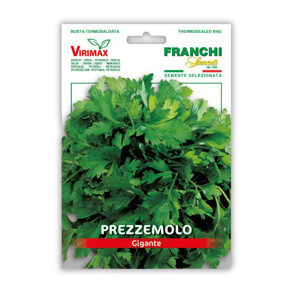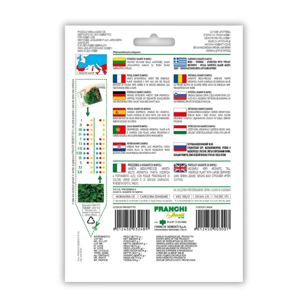 Semena peteršilja Gigante di Napoli, 12 g. Srednje zgodnja sorta z velikimi, temno zelenimi in aromatičnimi listi. Odporna rastlina, ki se hitro regenerira po rezu.